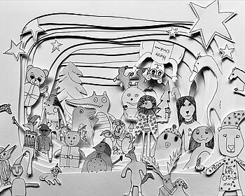Die Schülerinnen und Schüler der Klasse 5c entwarfen und zeichneten mit Finelinern verschiedene weihnachtliche Tierfiguren.
