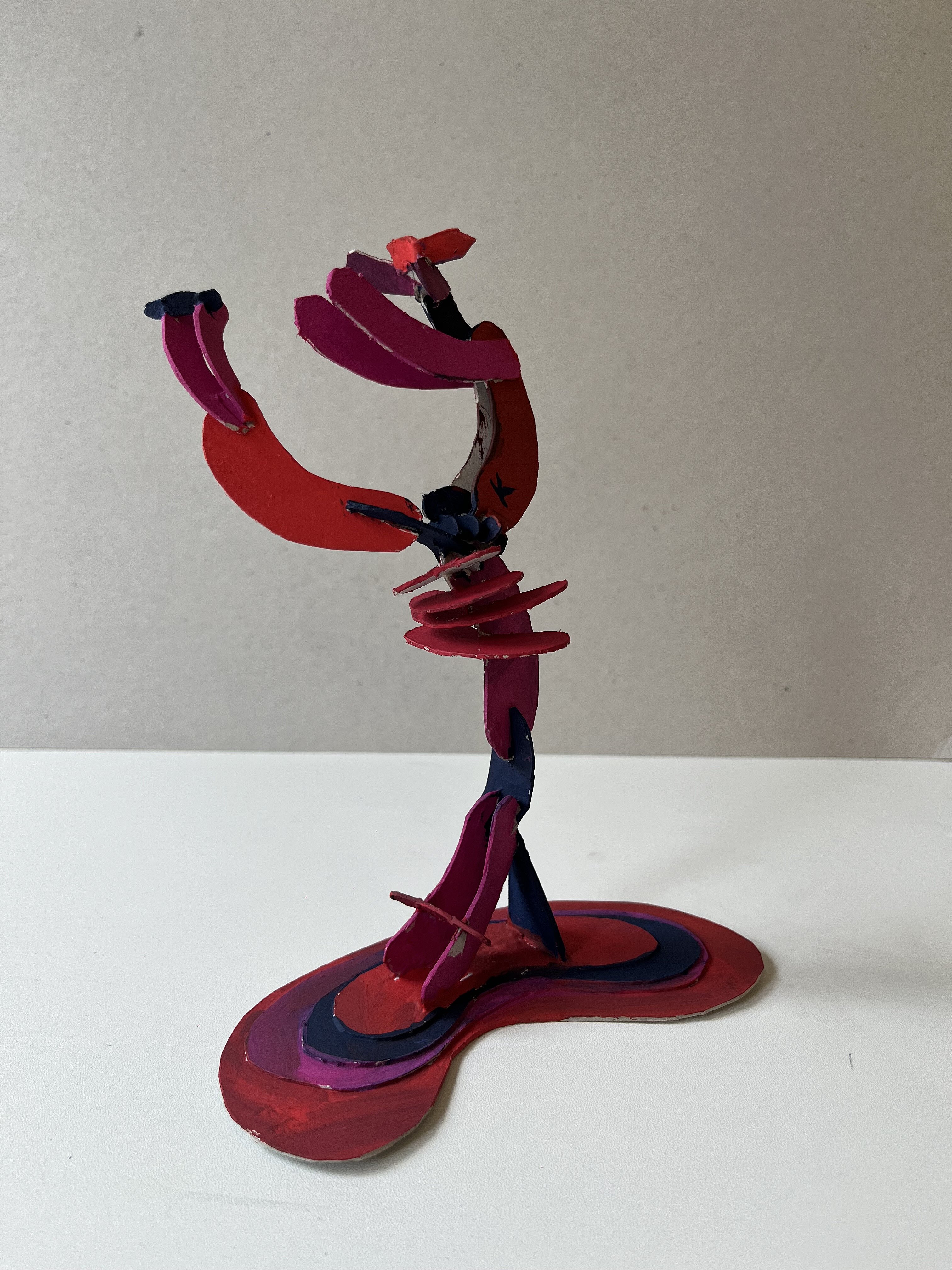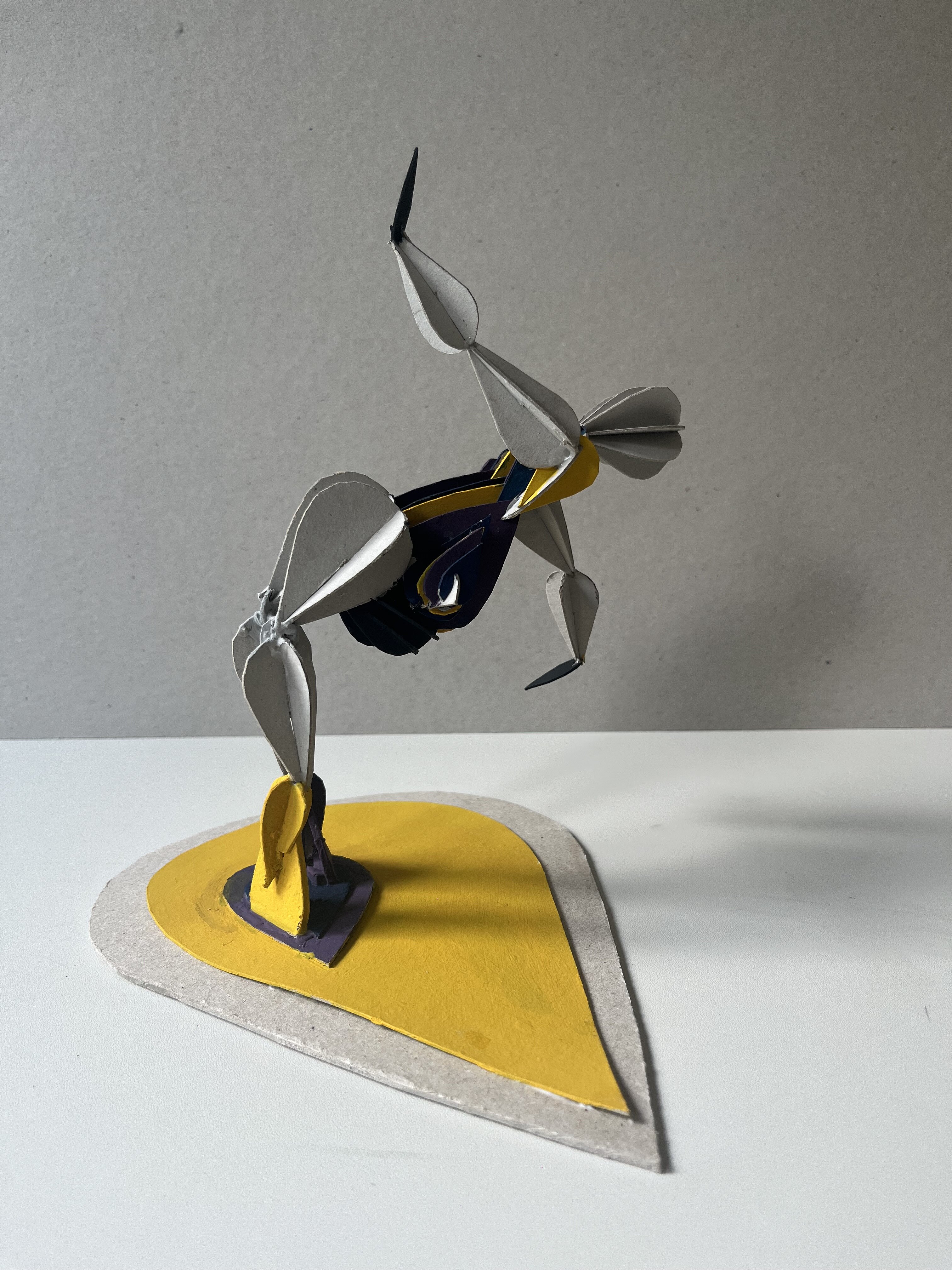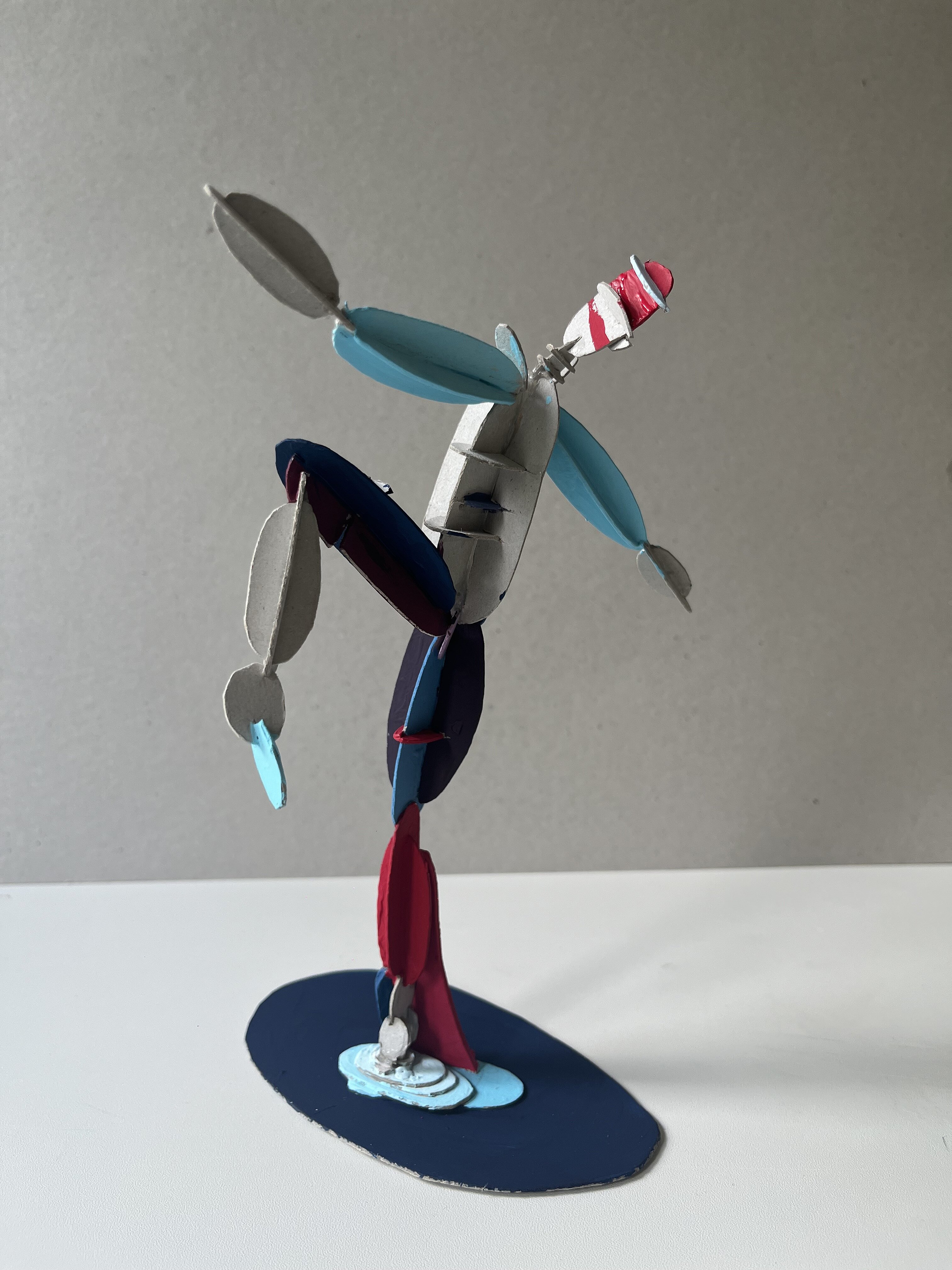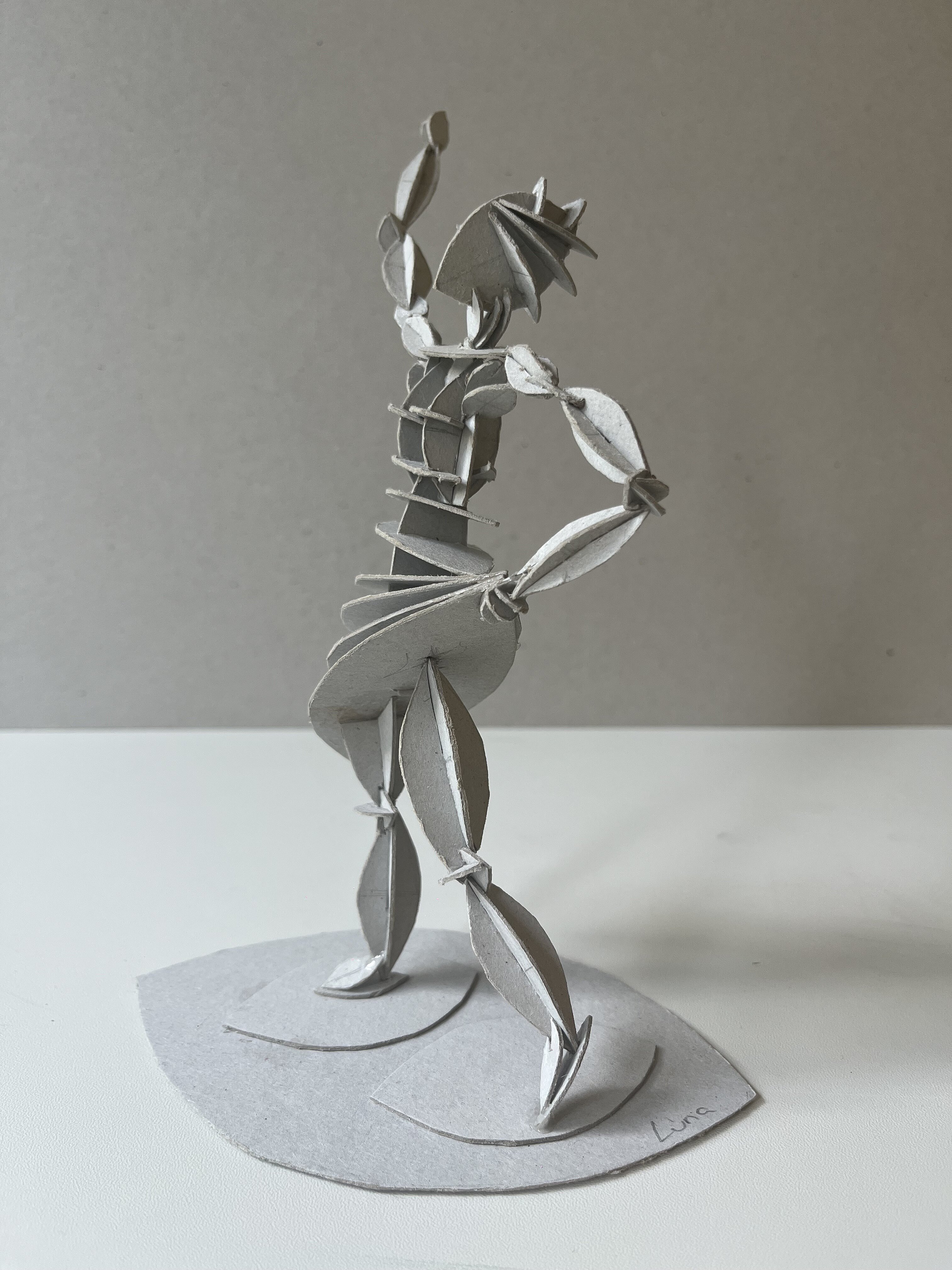 Modulfiguren - der Leistungskurs BK hat Figuren in Bewegung aus Pappe gebaut. Dabei setzt sich jede einzelne Gestalt aus einer stets ähnlich bleibenden Grundform zusammen, die lediglich in der Größe variiert. Die optionale Bemalung mit Acrylfarben unterstreicht die abstrakt-skulpturale Wirkung der Werke, die durchaus im ganz großen Format denkbar wären.