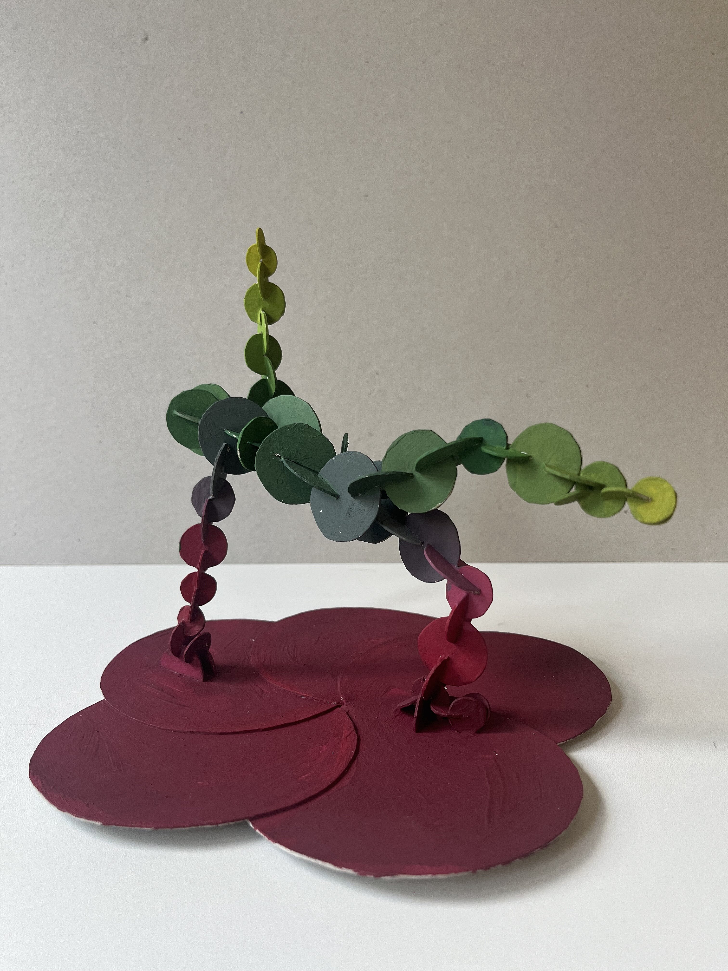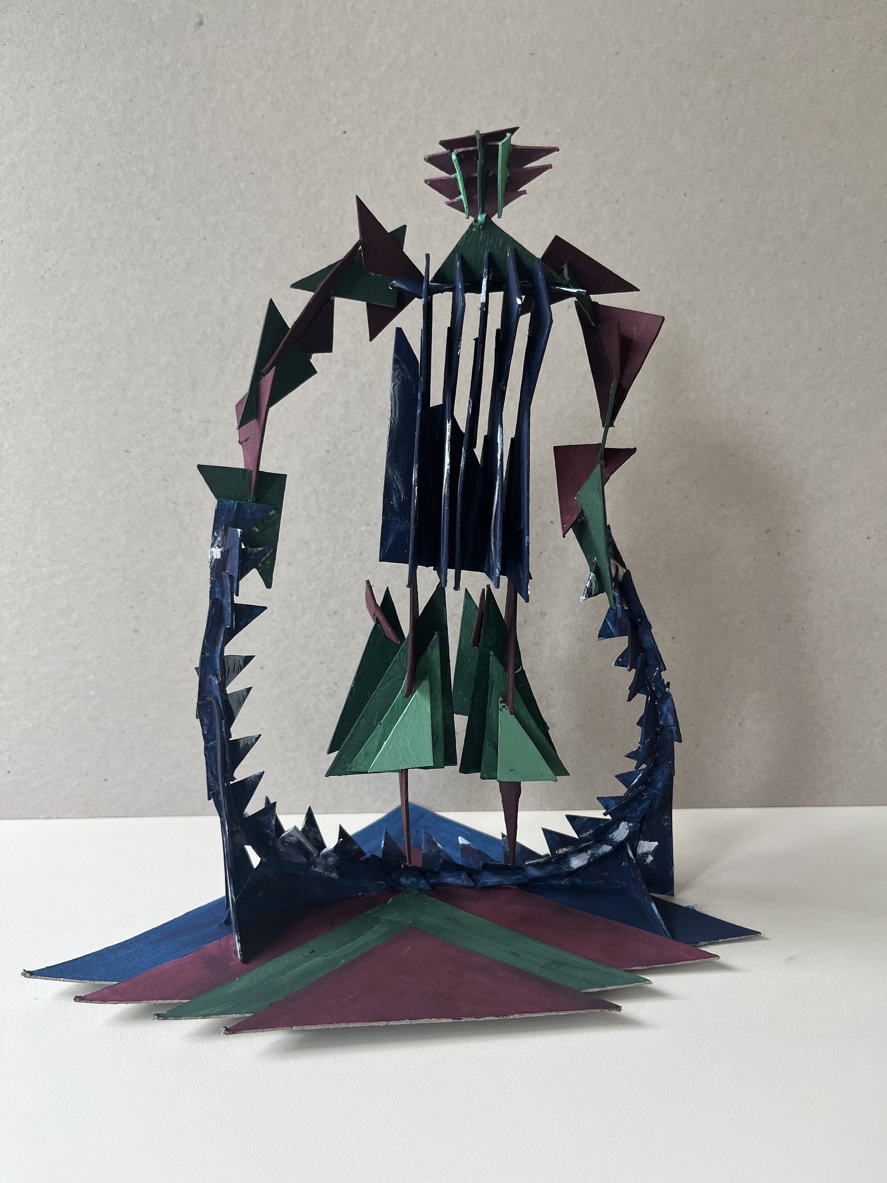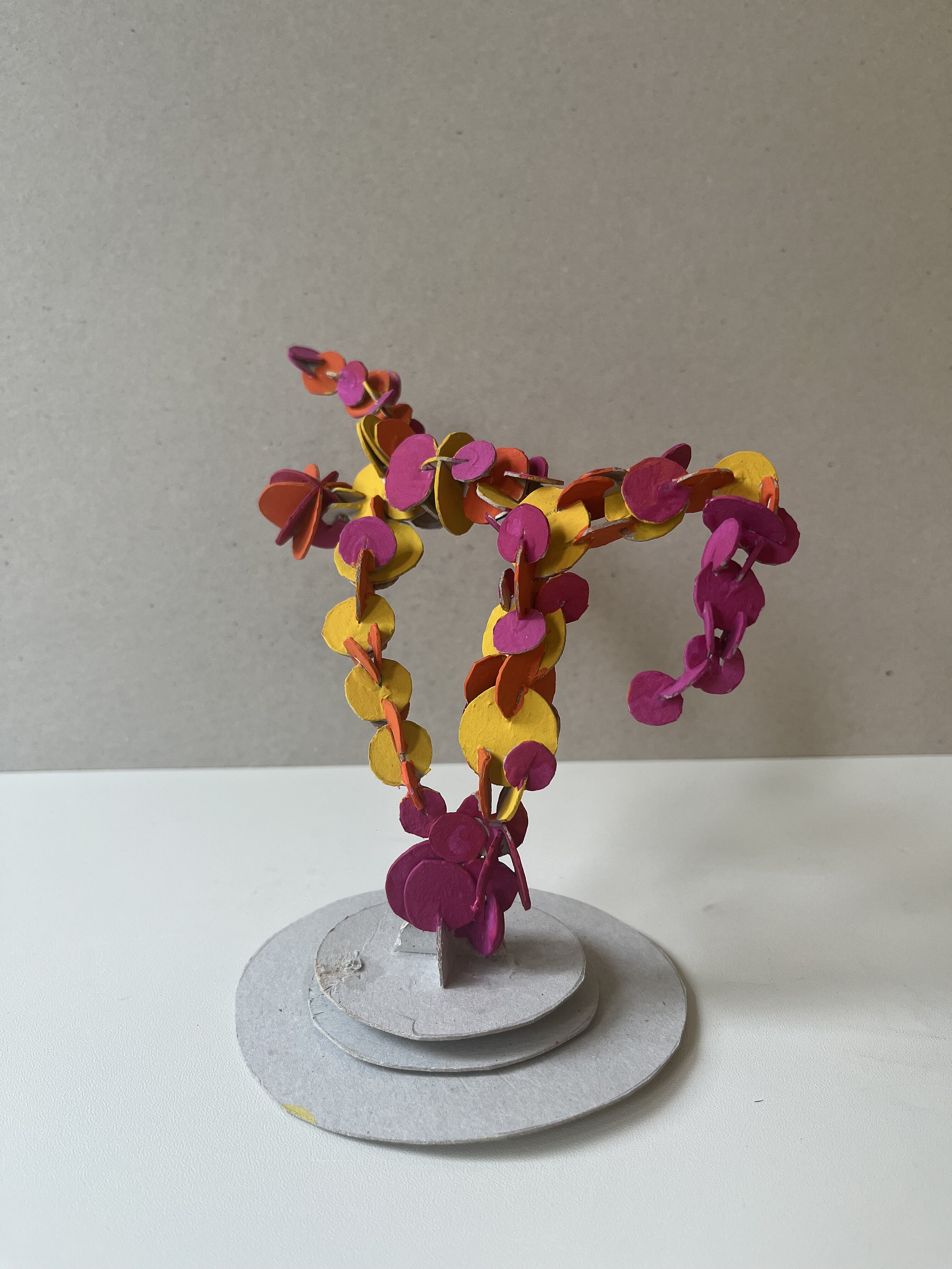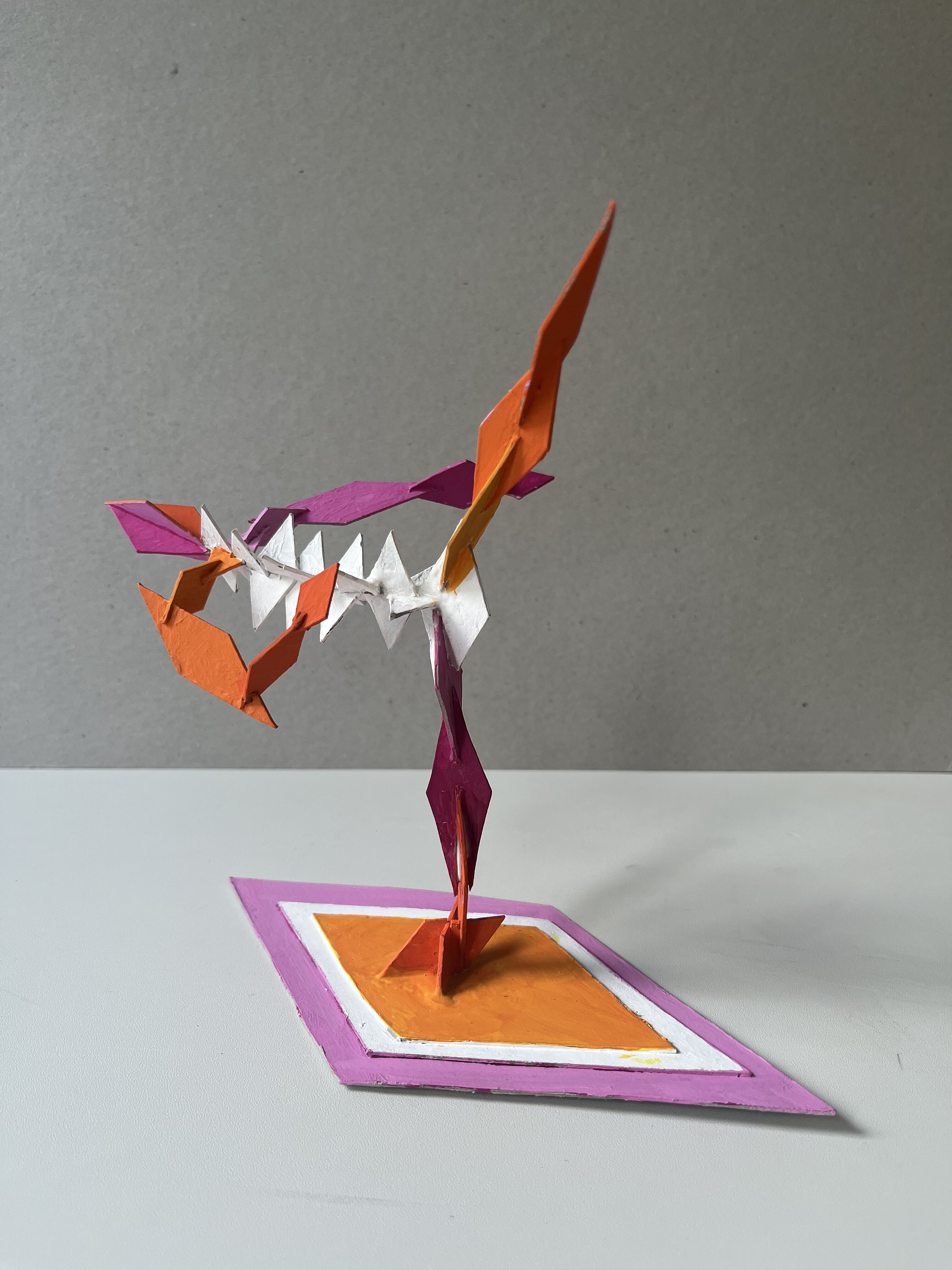 Modulfiguren - der Leistungskurs BK hat Figuren in Bewegung aus Pappe gebaut. Dabei setzt sich jede einzelne Gestalt aus einer stets ähnlich bleibenden Grundform zusammen, die lediglich in der Größe variiert. Die optionale Bemalung mit Acrylfarben unterstreicht die abstrakt-skulpturale Wirkung der Werke, die durchaus im ganz großen Format denkbar wären.