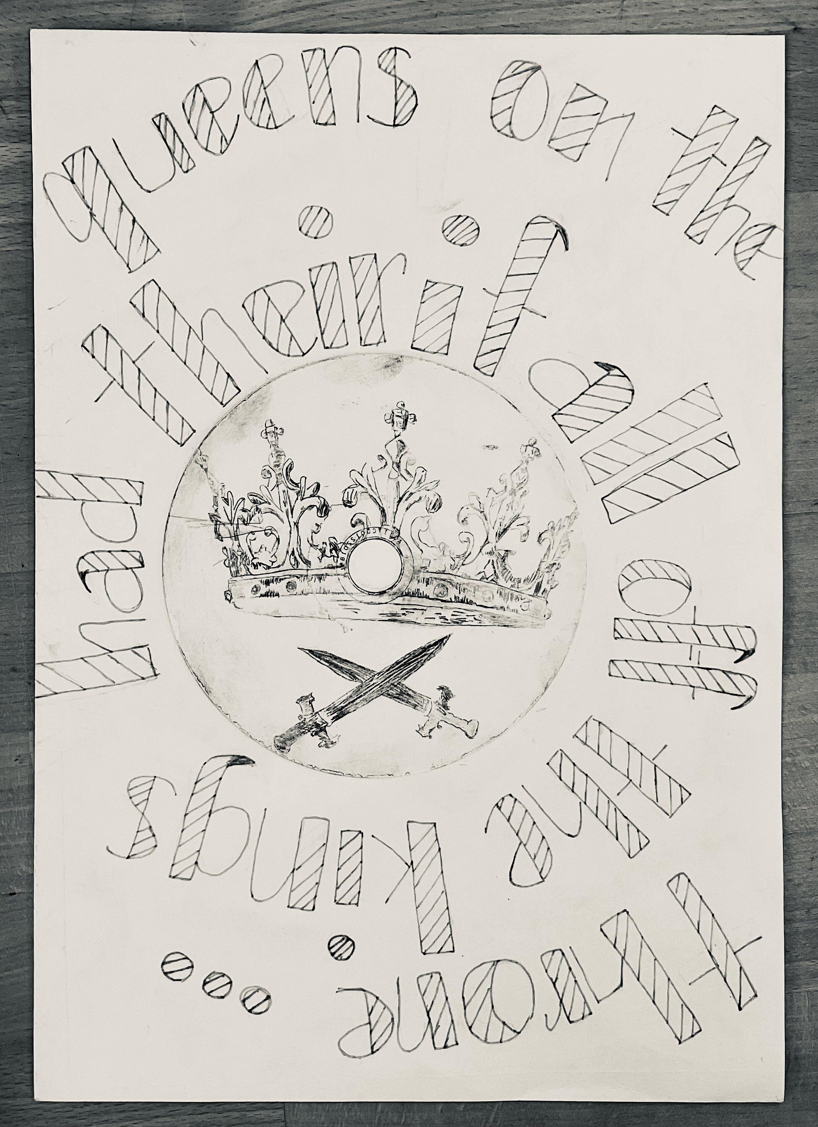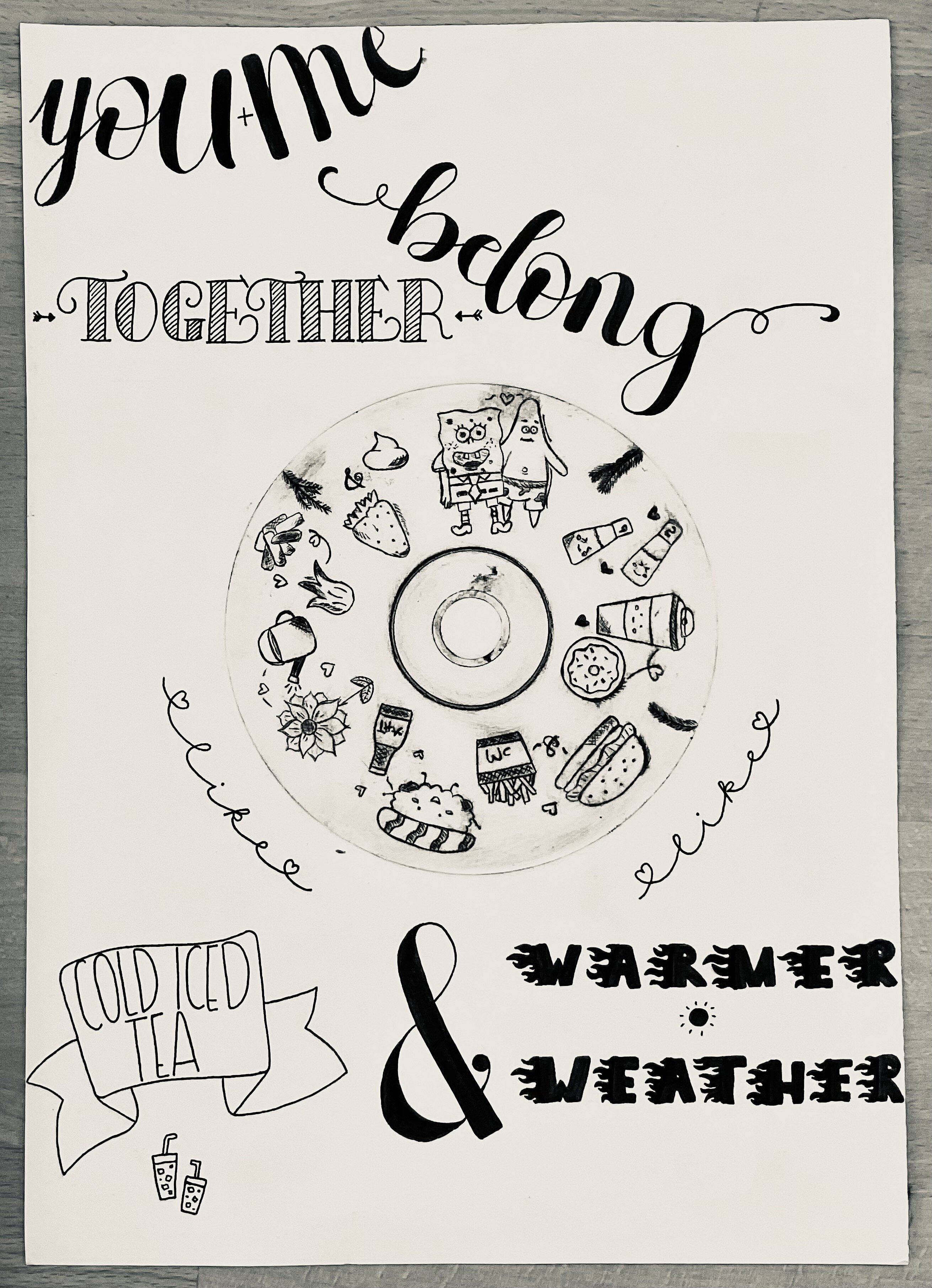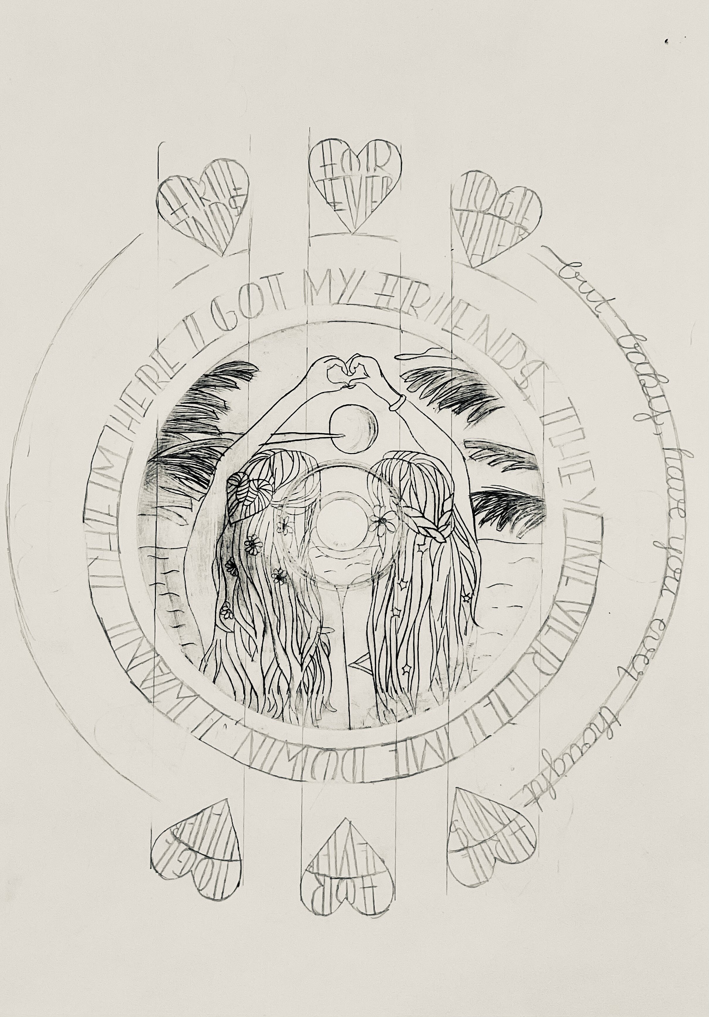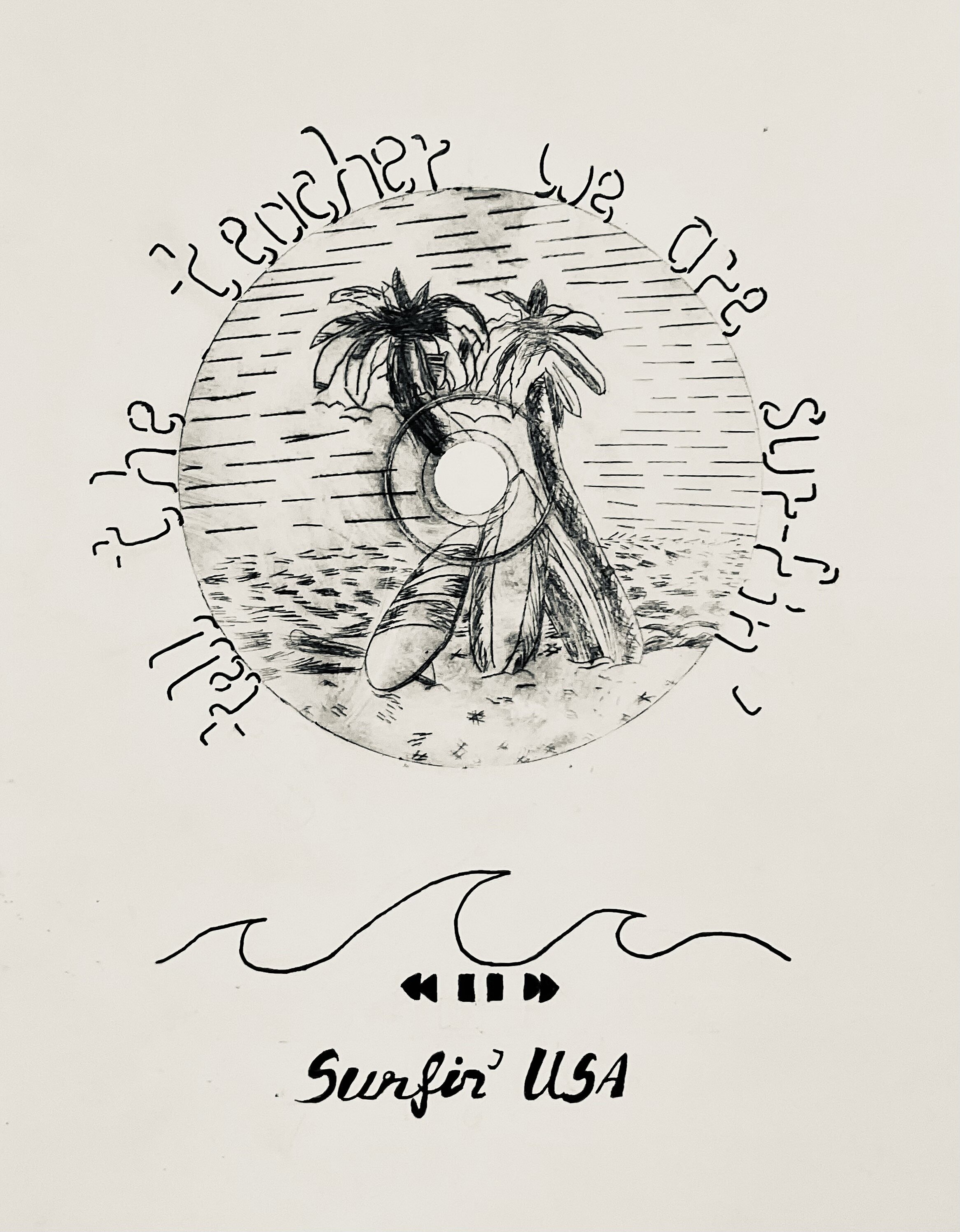 Die Schülerinnen und Schüler der Klasse 8b haben im Kunstunterricht zu ihrem jeweiligen Lieblingssong eine Kaltnadelradierung gestaltet. Dafür ritzten sie ihr Motiv sorgfältig in eine alte CD und fertigten anschließend im Tiefdruckverfahren Drucke an. Ergänzend entwarfen sie mit ausgewählten Textteilen ihres Liedes eine individuelle Schriftgestaltung, die den Druck umrahmt. So entstanden persönliche Werke, in denen Musik und Gestaltung kreativ miteinander verbunden sind.