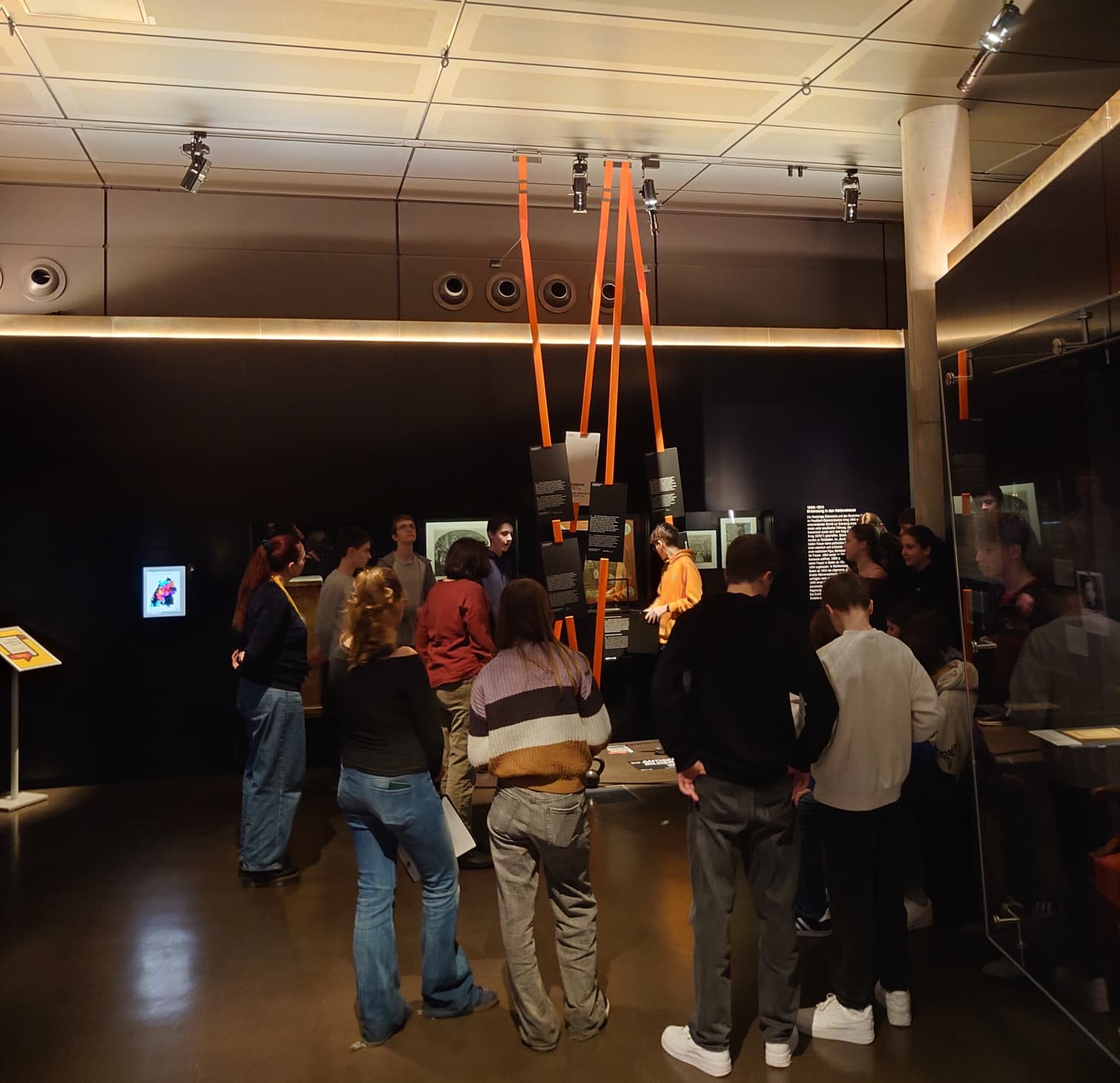 Im VU-Unterricht besuchte die Klasse 9a im Haus der Geschichte einen Workshop und die Dauerausstellung. Vor Ort erhielten wir durch viele spannende Erzählungen und Informationen Einblicke zum Thema Antisemitismus und dessen historischen Wurzeln, die bis in das Mittelalter zurückreichen. Nach Gesprächen über Stereotype und wiederkehrende Erzählungsmuster in der Gesellschaft gingen die SchülerInnen auf Entdeckungstour in den eindrücklich inszenierten Räumen, erforschten die Ausstellung und die verschiedenen Exponate der Landesgeschichte. Die fachliche Betreuung fand dabei durch Museumspädagoginnen aus dem Haus der Geschichte statt. Nach anfänglicher Besorgnis der Betreuerinnen, dass das Thema möglicherweise noch etwas zu anspruchsvoll für diese Altersstufe sei, konnte die 9a recht schnell das Gegenteil beweisen. Verschiedene historische Ausstellungsstücke, Dokumente und Bilder wurden von den SchülerInnen in Kleingruppen genauestens untersucht und den MitschülerInnen vorgestellt. So durften wir mit vielen Eindrücken und Gedankenanstößen nach Hause gehen, und das Haus der Geschichte weiß nun, dass man eine Klasse des Albertus-Magnus-Gymnasiums nicht unterschätzen sollte.
