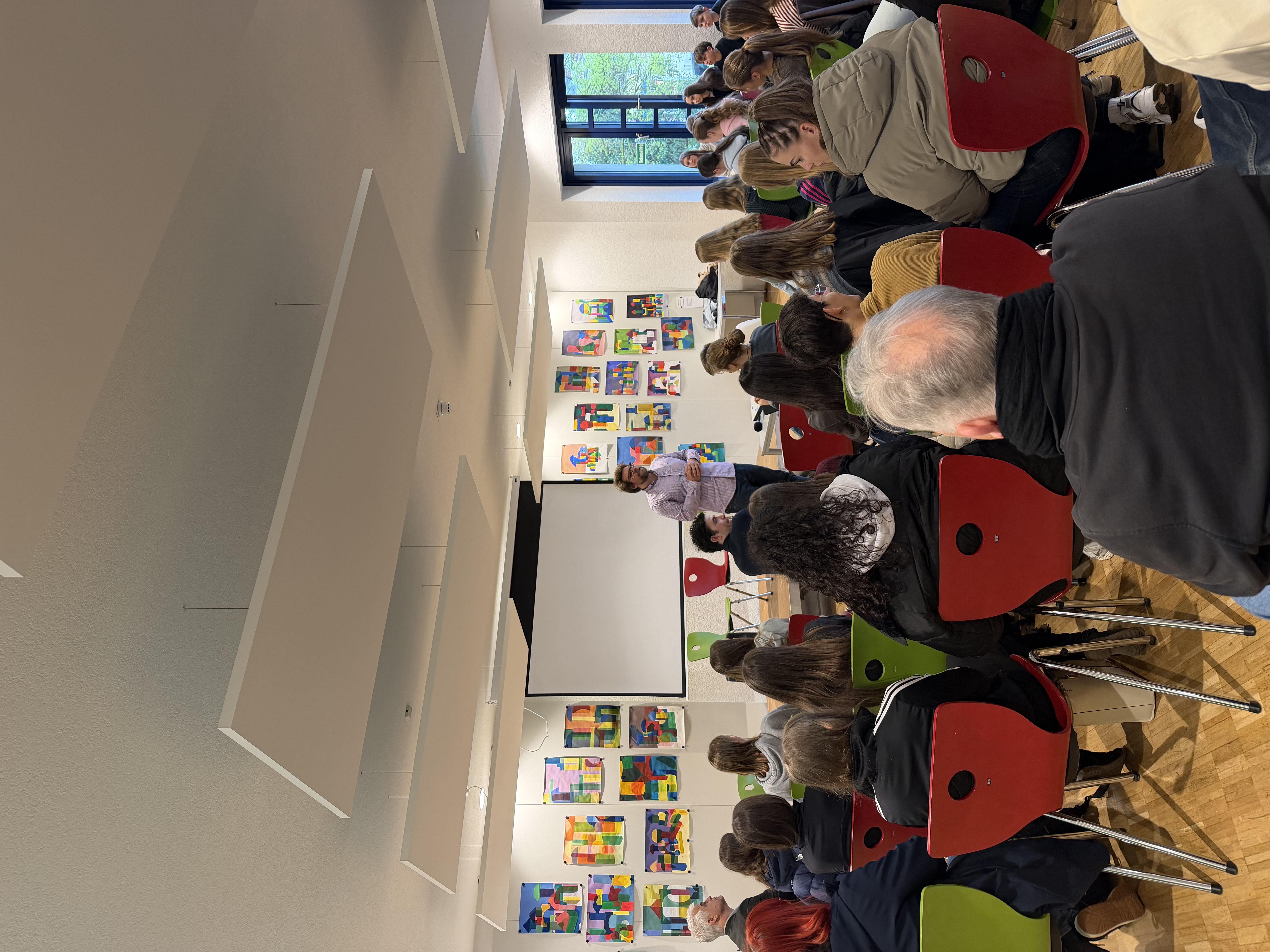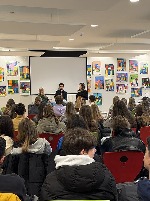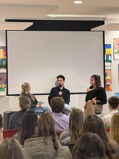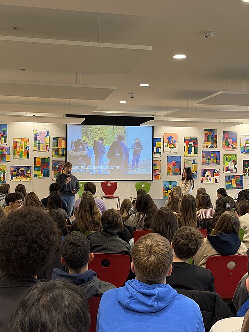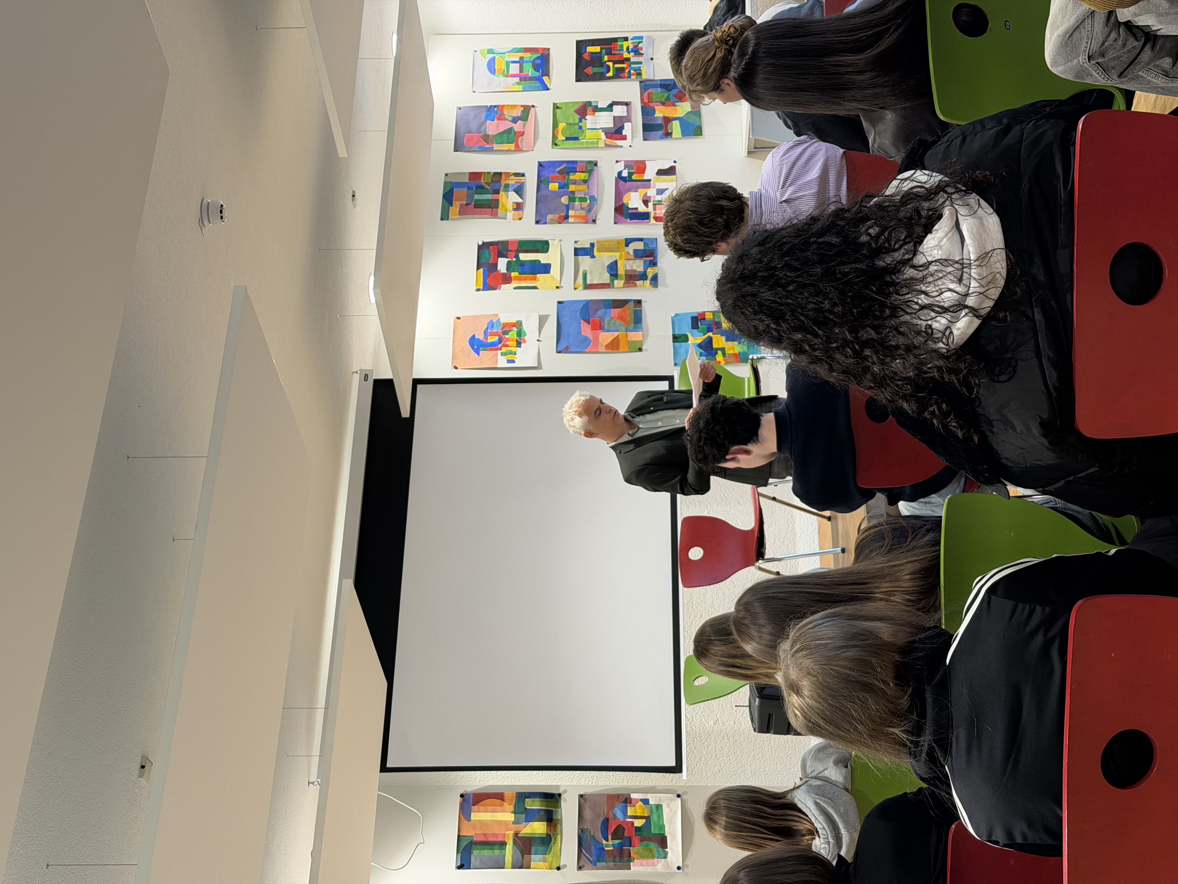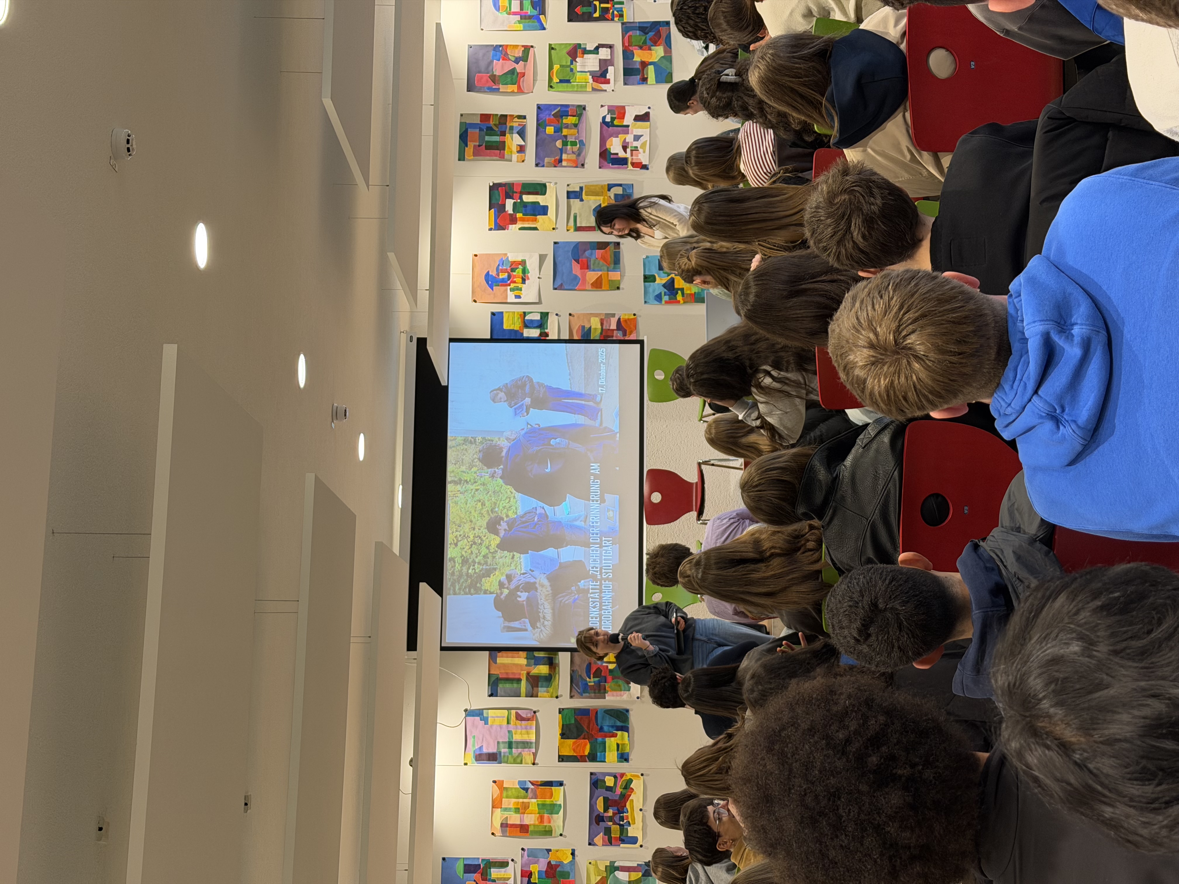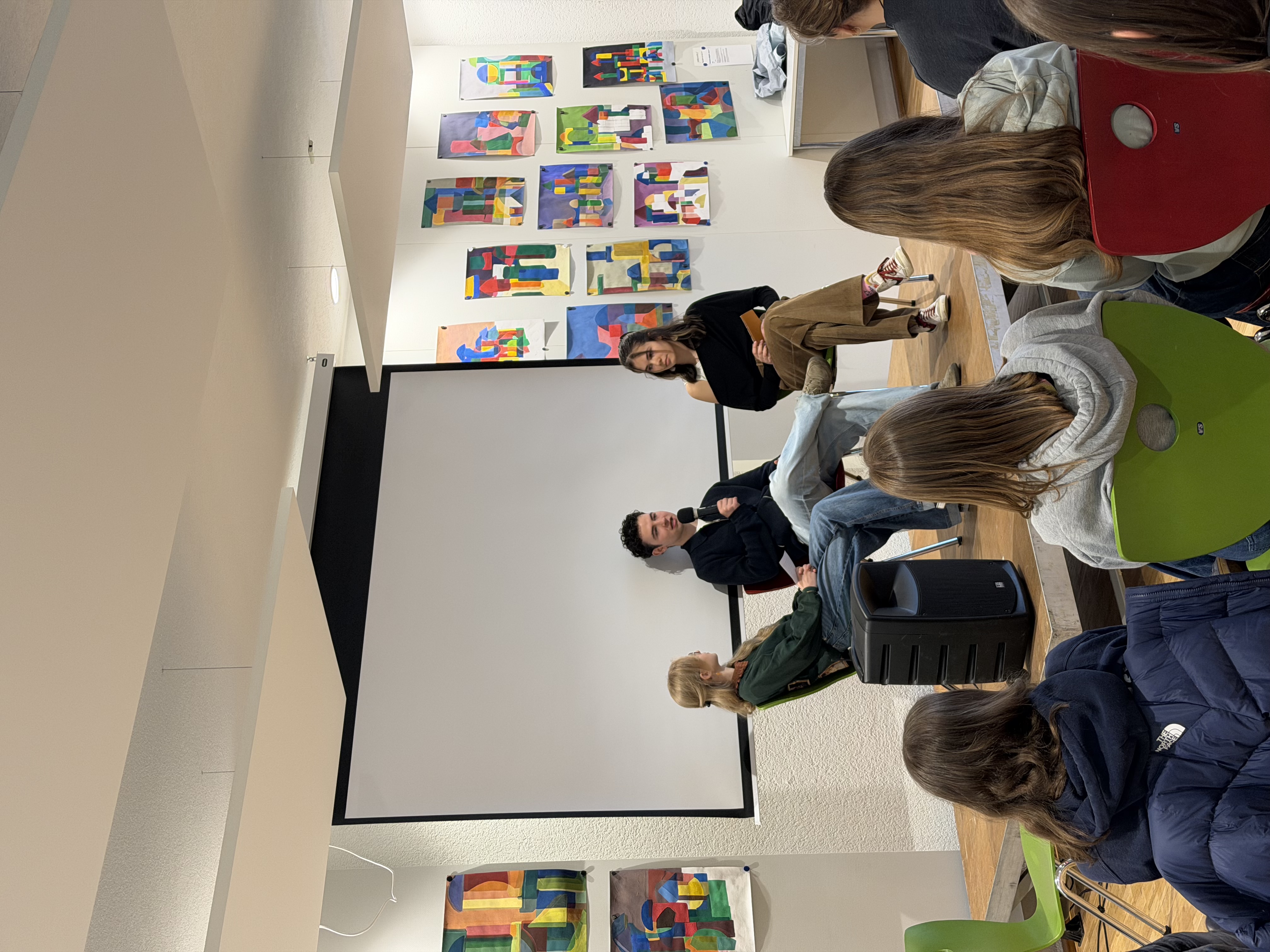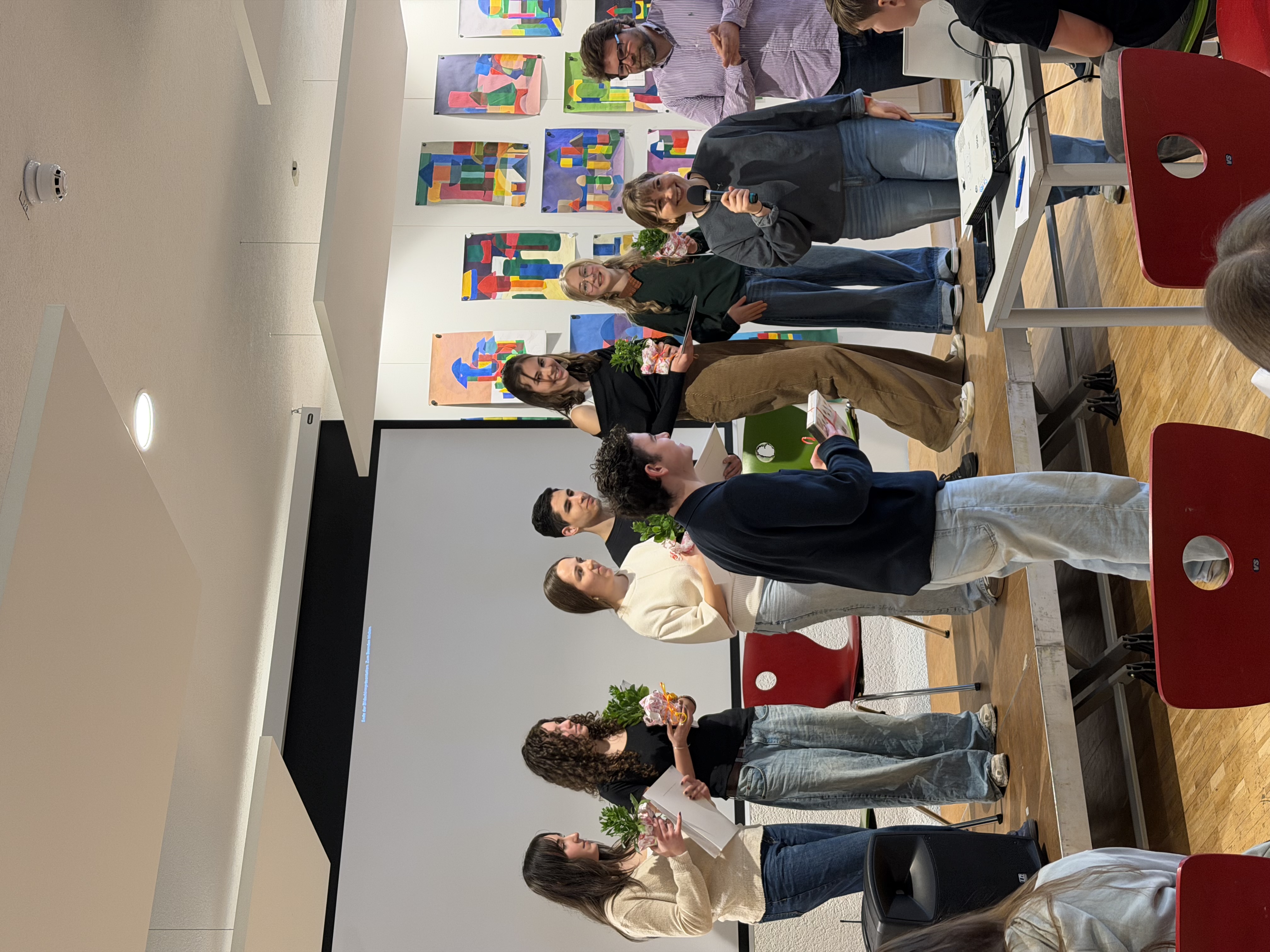 Die Veranstaltung wurde mit einem kurzen Grußwort unseres Schulleiters Herrn Braun eröffnet. Anschließend folgte ein besonderes Highlight: Adam Klein aus Zürich war extra aus der Schweiz angereist und erzählte von seiner eigenen Familiengeschichte. Dabei ging es auch um die jüdische Geschichte seiner Familie – mit Verbindungen bis nach Stuttgart. Sein Vortrag war sehr persönlich und hat viele im Publikum spürbar berührt.
