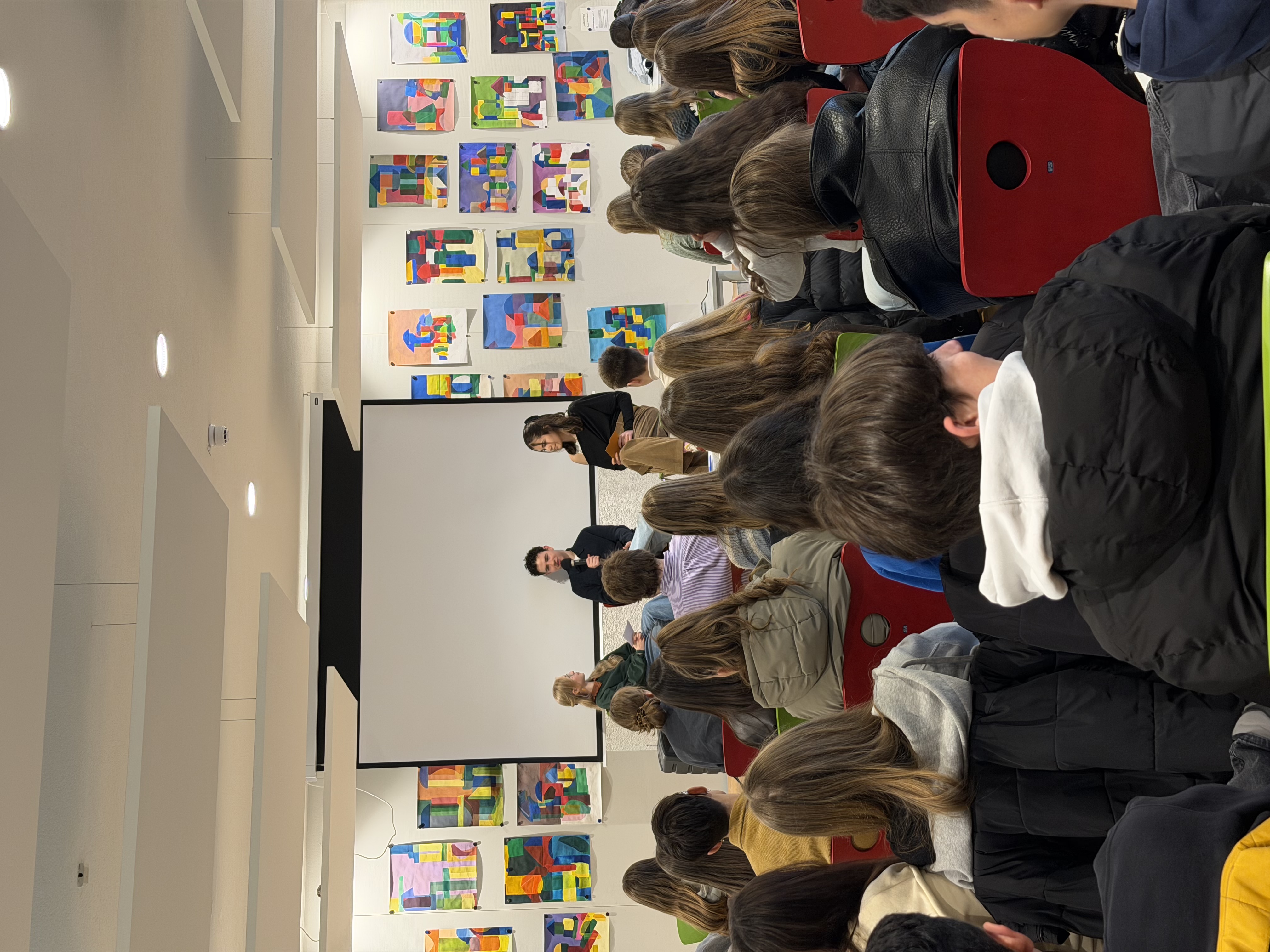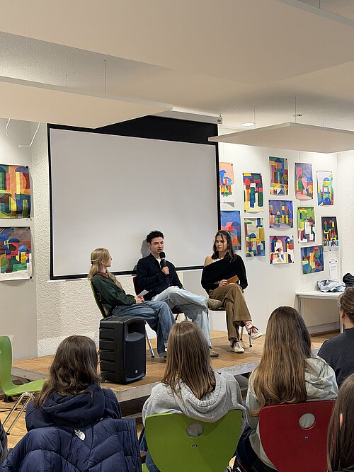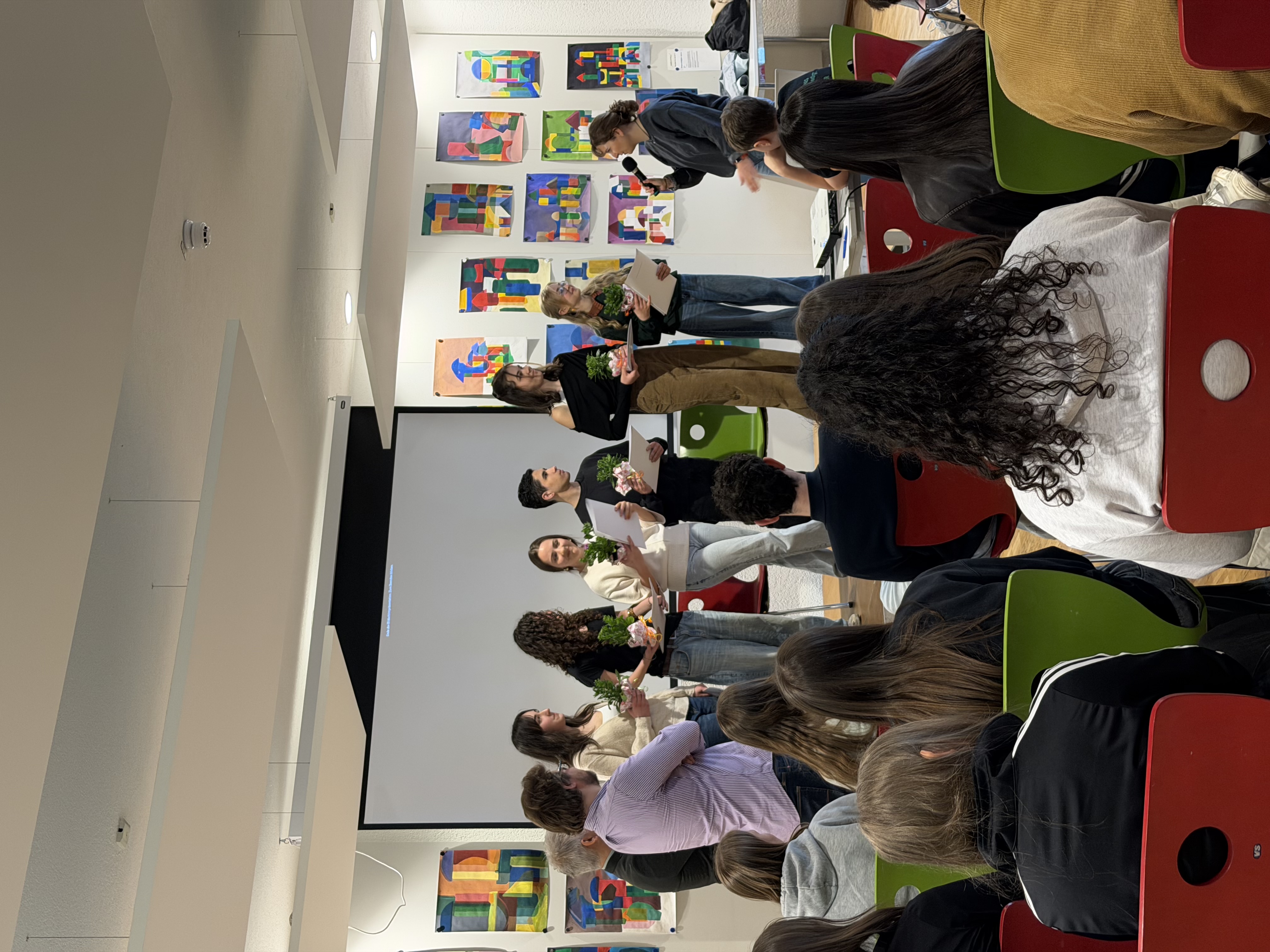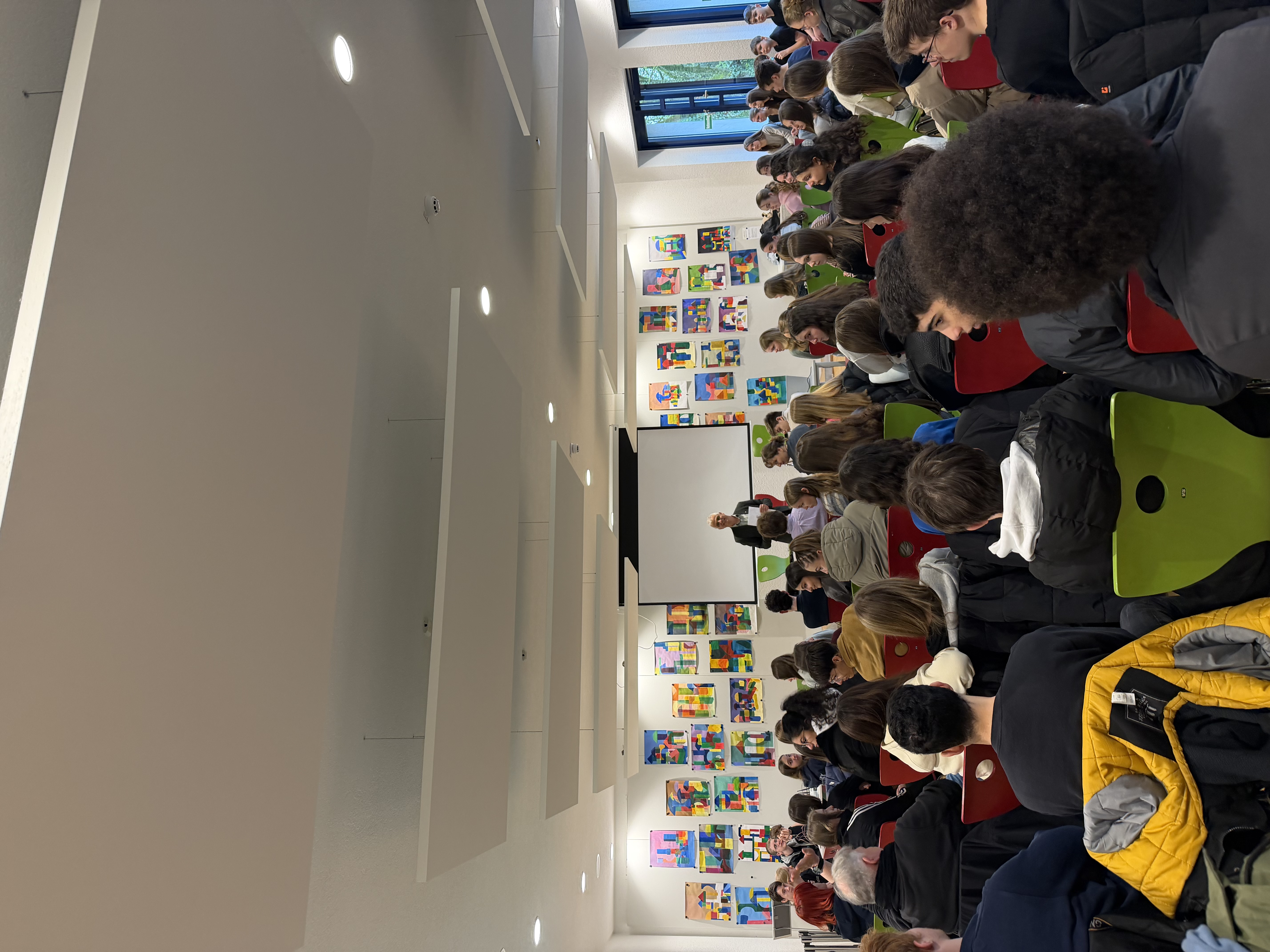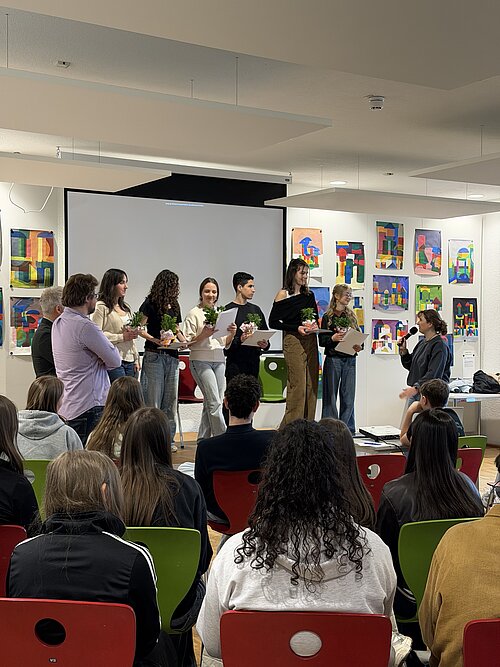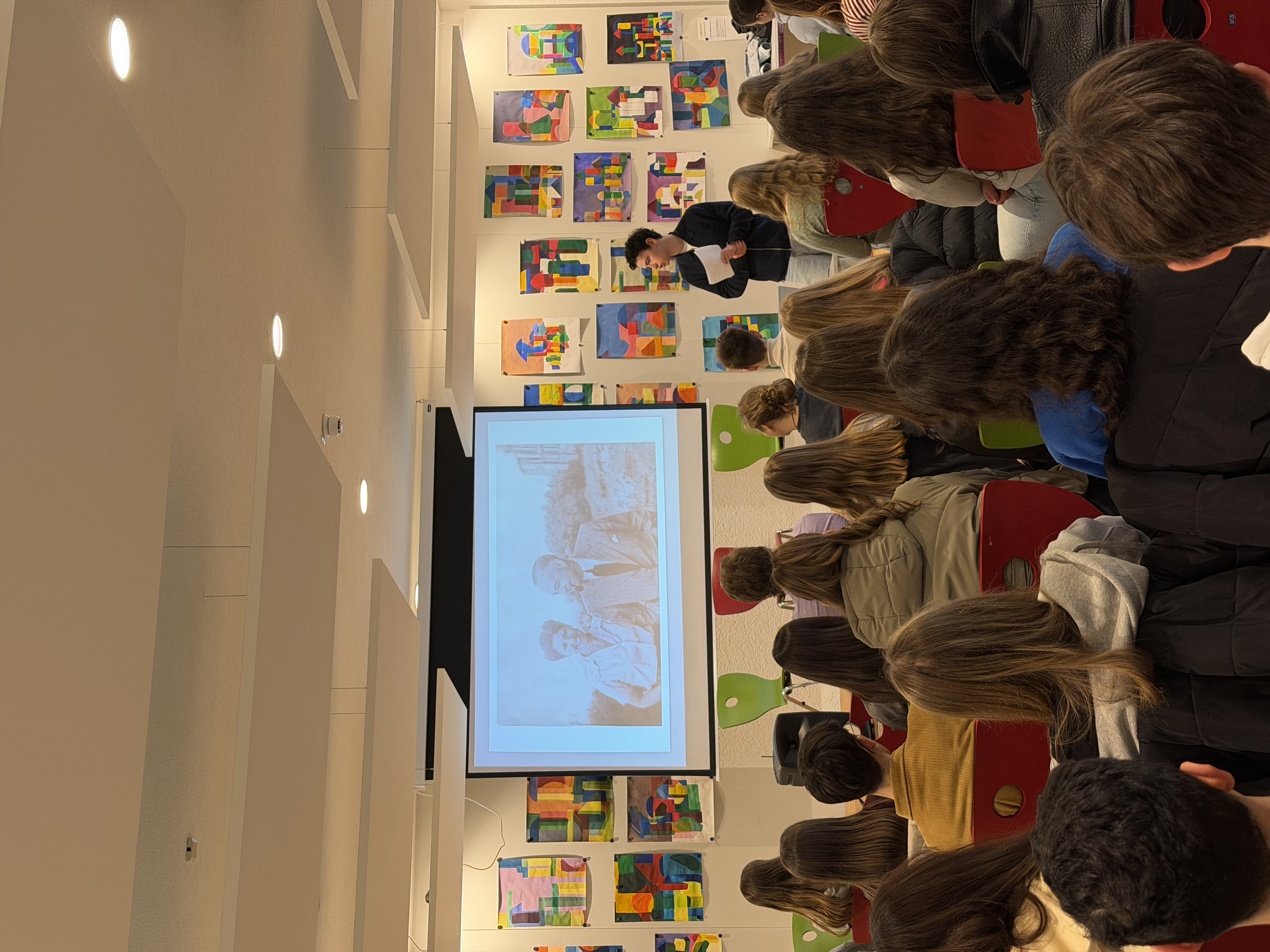 Die Veranstaltung wurde mit einem kurzen Grußwort unseres Schulleiters Herrn Braun eröffnet. Anschließend folgte ein besonderes Highlight: Adam Klein aus Zürich war extra aus der Schweiz angereist und erzählte von seiner eigenen Familiengeschichte. Dabei ging es auch um die jüdische Geschichte seiner Familie – mit Verbindungen bis nach Stuttgart. Sein Vortrag war sehr persönlich und hat viele im Publikum spürbar berührt.