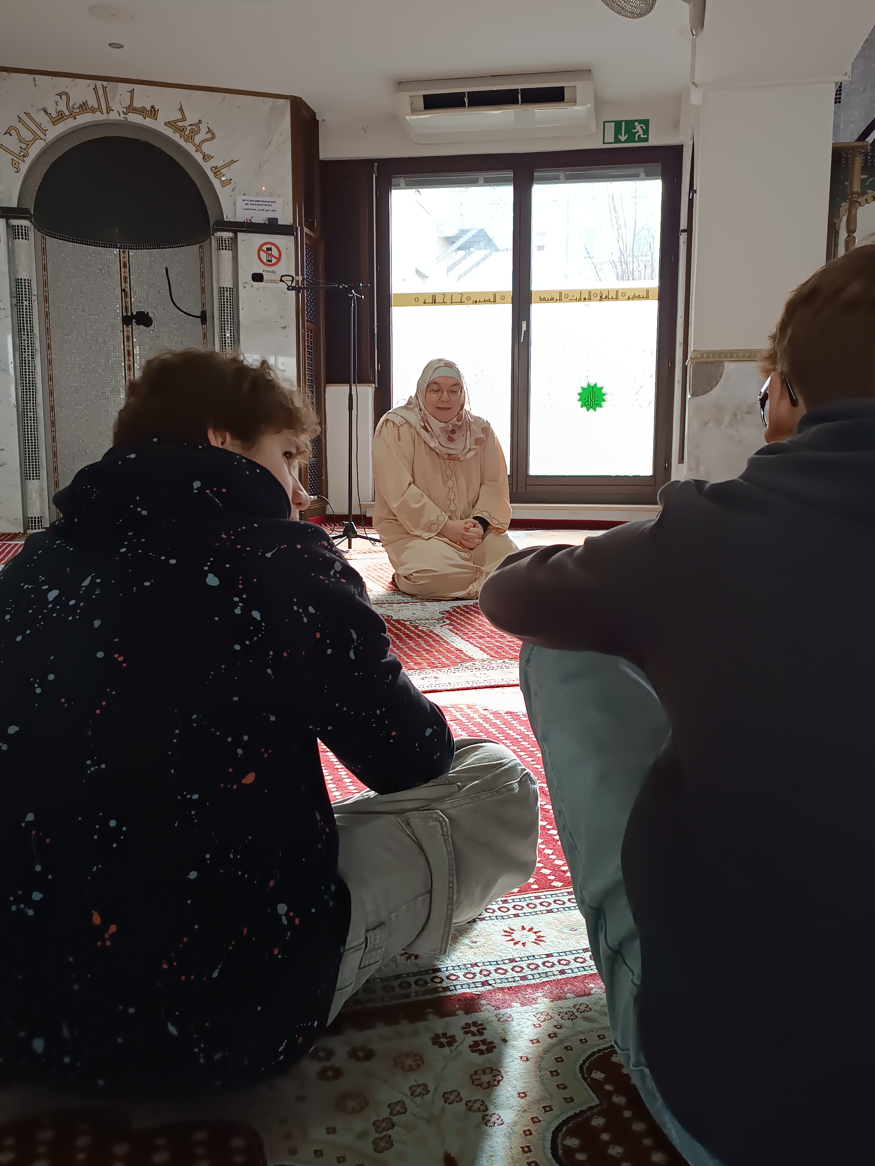 In einer offenen Gesprächsrunde sprachen wir über zentrale Fragen des muslimischen Glaubens und über den Alltag von Musliminnen und Muslimen. Themen wie die Grundprinzipien des Islams, religiöse Praxis, aber auch Erfahrungen mit Vorurteilen und Rassismus wurden dabei offen und respektvoll diskutiert. Ein weiterer Schwerpunkt war die Frage nach Gott. Gemeinsam wurde erarbeitet, dass Juden, Christen und Muslime von einem einzigen Gott ausgehen, diesen jedoch aus unterschiedlichen religiösen Perspektiven betrachten.